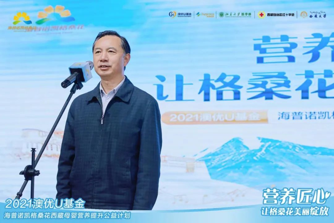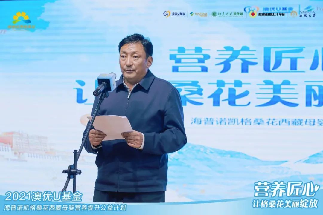 作為此次公益項目主要開展地,那曲市正處于奮力推進那曲長治久安和高質量發展的關鍵時刻。儀式上,那曲市人民政府副市長加多表示,那曲市認真貫徹落實國家關于西藏工作的重要方針政策和新時代黨的治藏方略,經濟社會發生了巨大改善,特別是隨著經濟發展、社會進步,人民的生活水平得到顯著提升。此次,澳優U基金海普諾凱格桑花公益團隊響應國家“國民營養計劃”號召,來那曲開展公益活動,實施精準科普、營養幫扶公益項目,將進一步提高那曲母嬰生存質量,推動兒童健康成長,為那曲社會救助及慈善事業添磚加瓦。