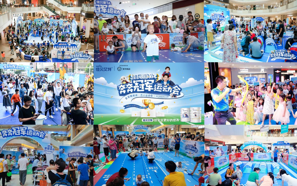 母嬰門店是奶粉品牌重要的傳播和營銷陣地。在門店廣宣布建上,佳貝艾特“藍海行動”將全國三萬家門店打造成品牌傳播陣地,在渠道終端持續彰顯羊奶“領頭羊”的品牌調性。渠道深耕離不開線下活動的打造,佳貝艾特打造了開新專項活動、品牌季度主題推廣活動、親子DIY互動活動等豐富多彩的消費者活動,根據各類型門店場地大小“因地制宜”,定制了300㎡路演規模、120㎡中型規模以及30㎡輕松復制小規模的差異化合作方案。憑借“藍色軍團”迅速、系統的執行能力,佳貝艾特確保每一場活動優質落地終端,充分發揮了優質活動對門店開新和動銷的助推作用,受到了行業的高度評價。值得一提的是,2021年佳貝艾特借勢奧運熱點和吉尼斯世界紀錄IP打造的“佳貝愛TA 奔奔冠軍運動會”也受到消費者的廣泛喜愛,活動累計參與家庭超30萬。