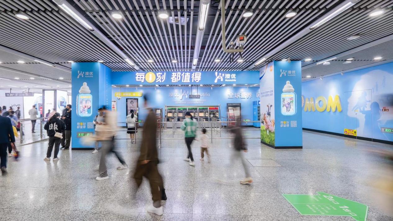 △“每一刻,都值得”澳優品牌站廳(坐標:長沙地鐵五一廣場站3A通道口)