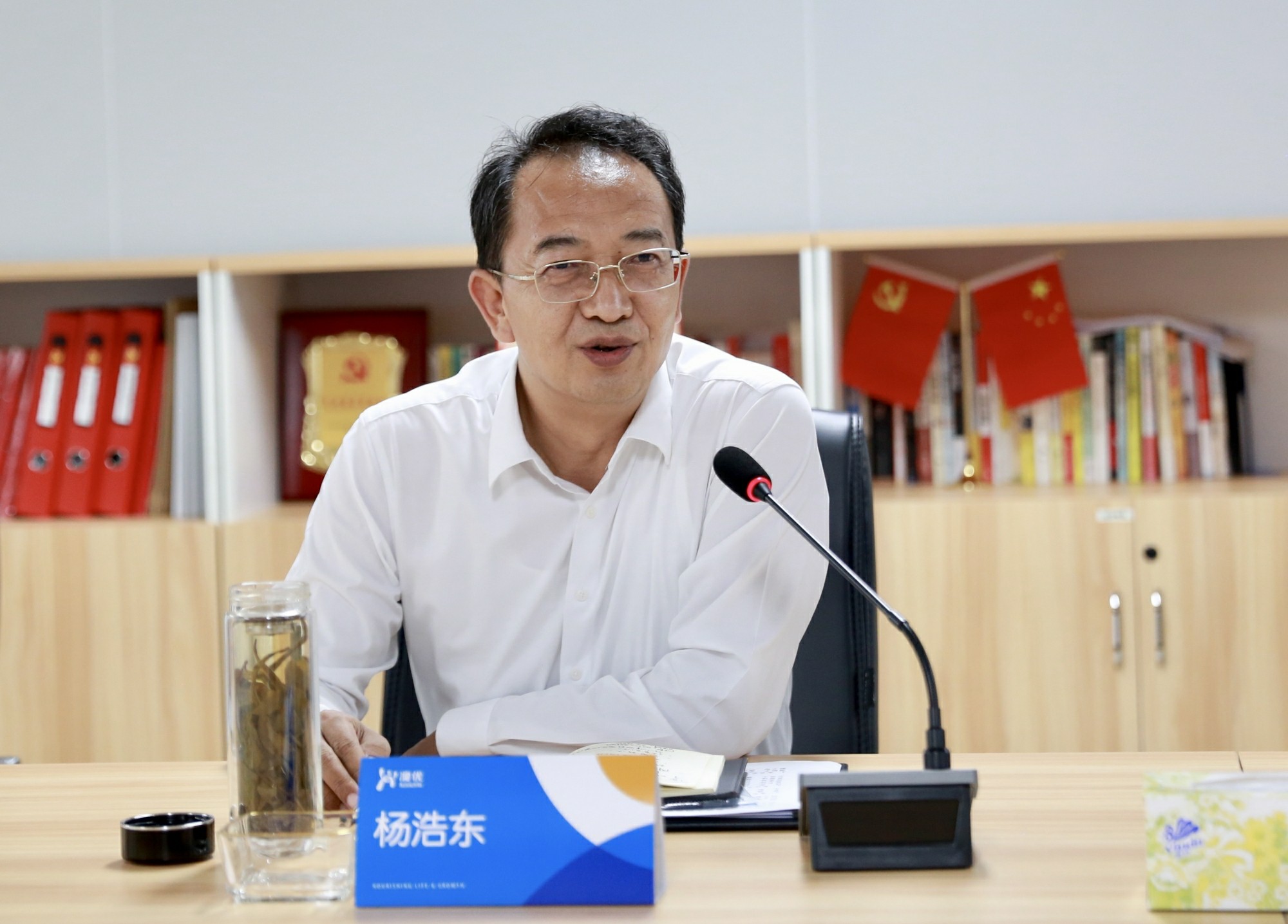 △澳優(yōu)董事長顏衛(wèi)彬向調(diào)研組介紹企業(yè)發(fā)展情況。