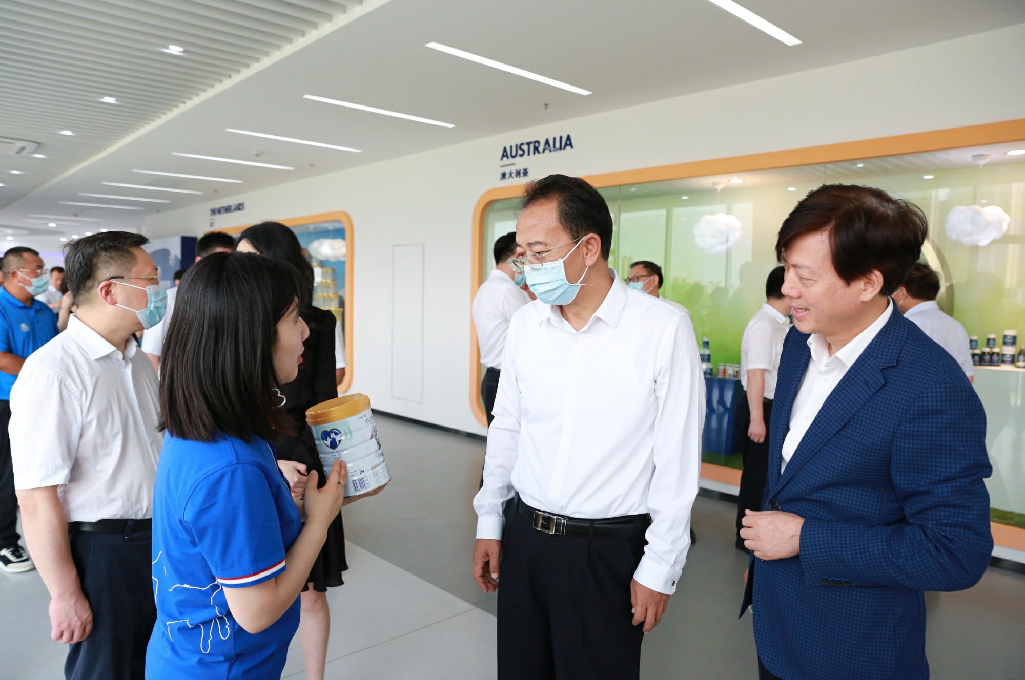 調(diào)研組一行先后參觀了澳優(yōu)智慧營養(yǎng)廳及質(zhì)檢實驗室,詳細(xì)了解澳優(yōu)發(fā)展歷程、質(zhì)量管控、品牌建設(shè)以及未來規(guī)劃。“工廠每年產(chǎn)能是多少?”“疫情對企業(yè)影響大不大?”參觀過程中,楊浩東部長不時駐足,親切詢問企業(yè)發(fā)展情況。