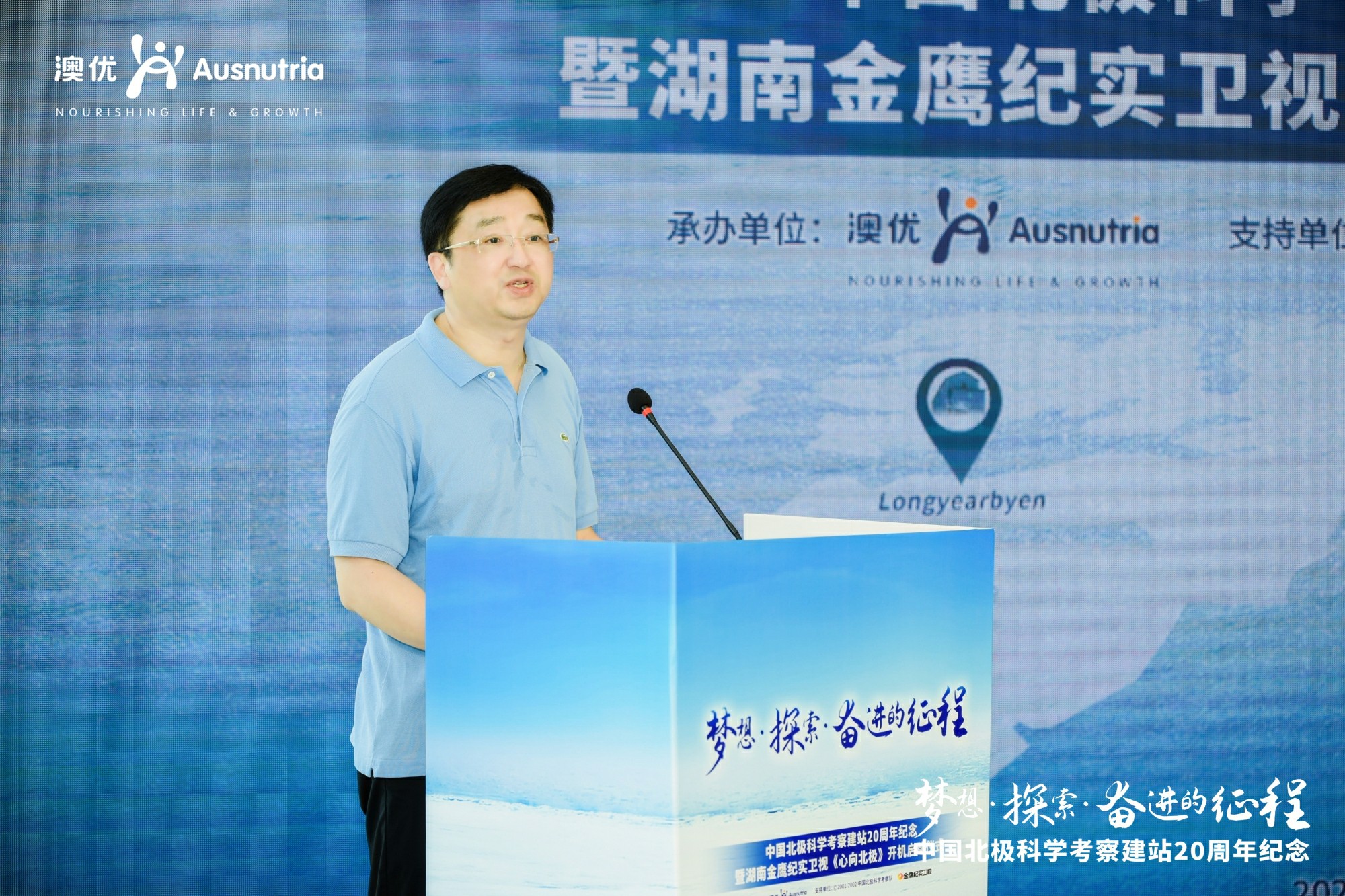 中國科學院院士、2001-2002中國北極科學考察隊首席科學家劉嘉麒,中國科學院大氣物理所研究員、2001-2002中國北極科學考察隊隊長高登義,中國科學院國際學術交流中心高級工程師、2001-2002中國北極科學考察隊副隊長陶寶祥等中國首個科學考察站建站隊代表;中共湖南省委宣傳部部務會成員、二級巡視員李穎,湖南廣播影視集團有限公司(湖南廣播電視臺)黨委副書記、總經理、臺長、總編輯龔政文,湖南廣播電視臺金鷹紀實頻道黨總支書記、頻道總監章紅偉等政府領導和嘉賓;澳優董事長、2001-2002中國北極科學考察隊副隊長顏衛彬等澳優管理層出席活動。原人民日報常委副總編輯、2001-2002中國北極科學考察隊顧問李仁臣致賀信。本次活動通過網絡直播的形式,與更多關注北極科考、關注澳優的朋友共同見證我國北極科考事業20年來的發展。