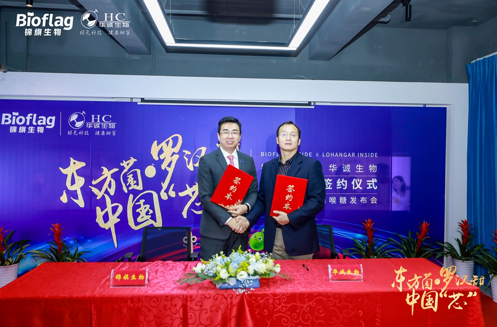 會上,華誠生物董事長黃華學與澳優中國區副總裁、錦旗生物董事長劉學聰共同簽署戰略合作協議。據了解,錦旗生物與華誠生物均成立于2008年,已分別在益生菌及羅漢果兩個細分領域構建了集科研、生產、銷售于一體的全產業鏈,目前已處于行業領先地位。未來,雙方將基于相通的創新精神和經營理念,持續推進羅漢果代糖及益生菌綜合解決方案,引領行業天然減糖“芯”風向。
