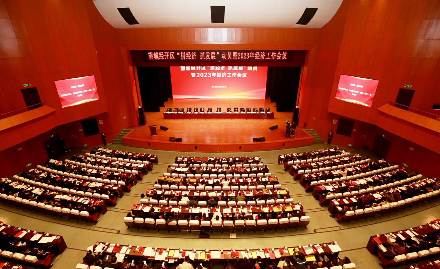 △望城經(jīng)開區(qū)“拼經(jīng)濟(jì) 抓發(fā)展”動員暨2023年經(jīng)濟(jì)工作會議現(xiàn)場。