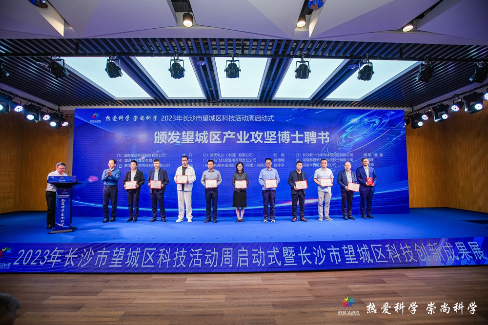 5月24日,2023年長沙市望城區科技活動周啟動儀式暨“創新引領 雙鏈融合”望城區科技創新成果展在望達智造小鎮舉行。活動現場,望城區為澳優(中國區)數字化總監張閣等10名產業攻堅博士頒發聘書,并為澳優等8個省級以上重大科技創新平臺兌現獎補資金。