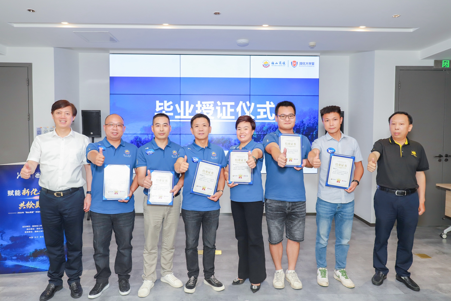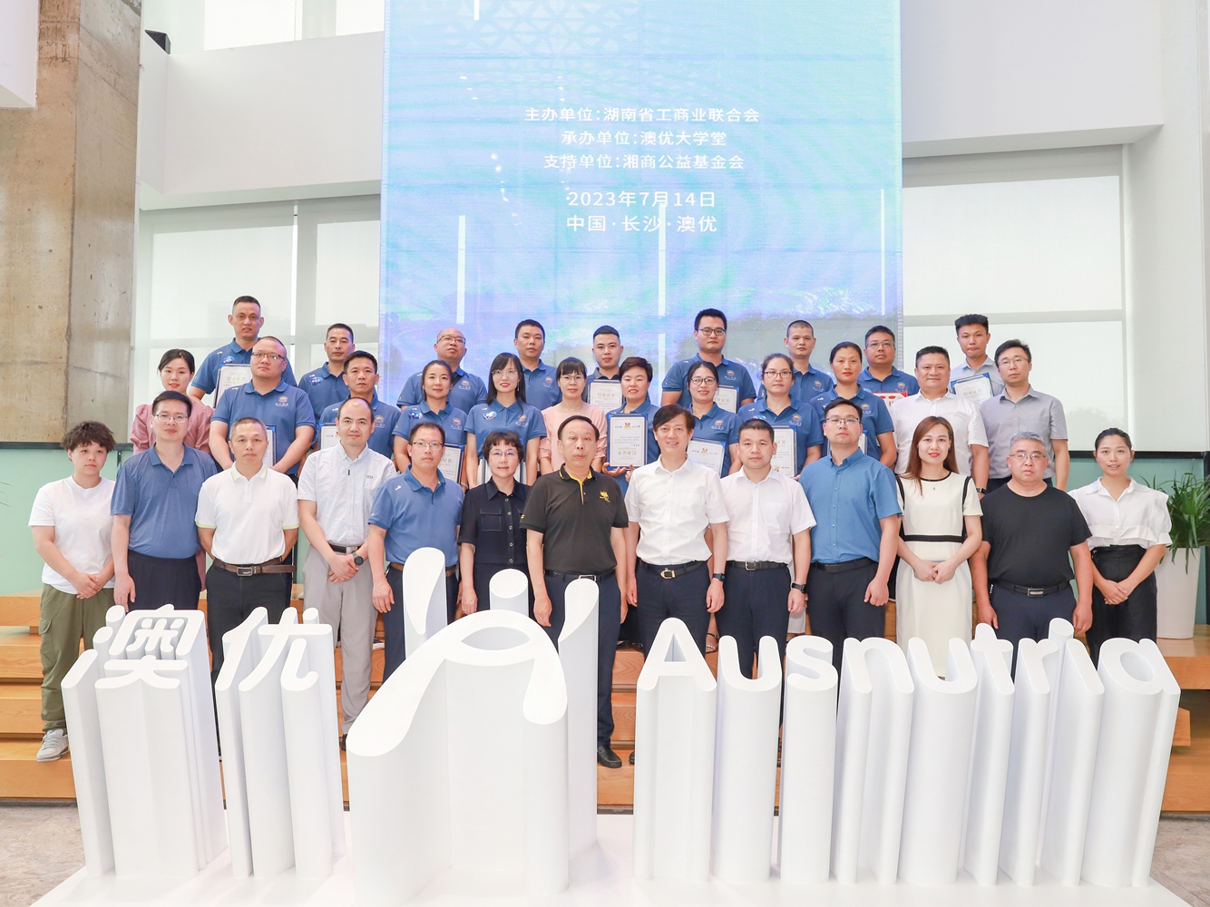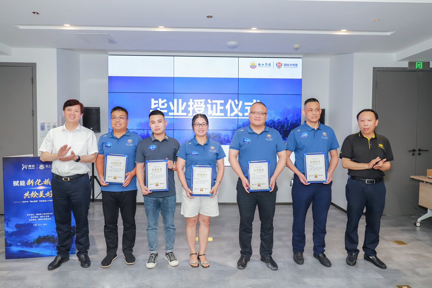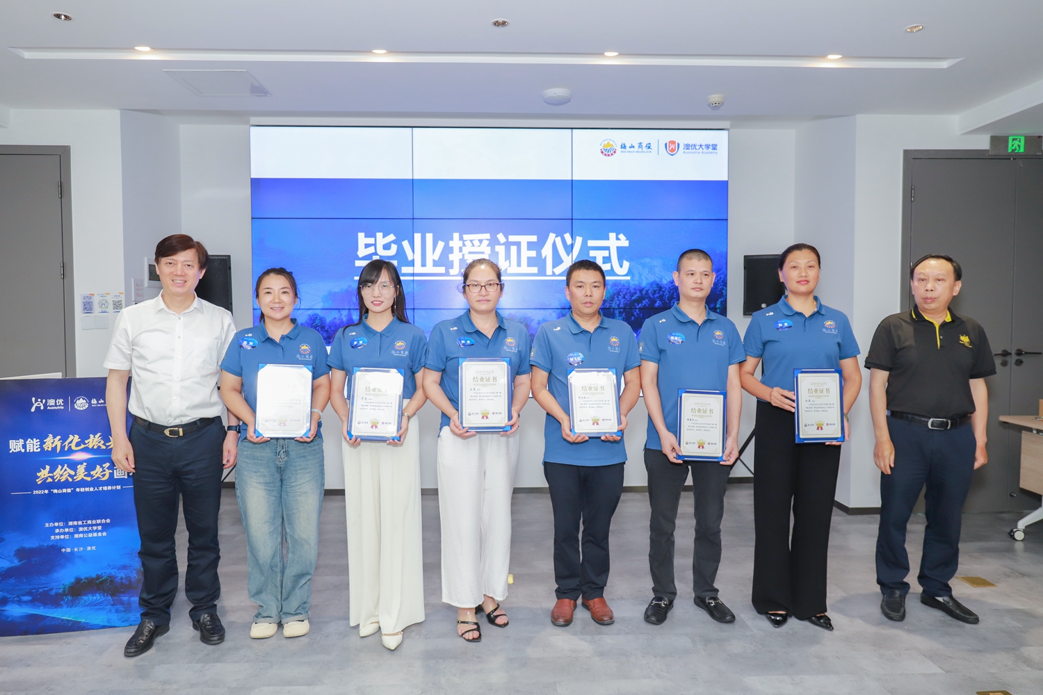7月14日,首期“梅山商俊”新化縣年輕創(chuàng)業(yè)人才培養(yǎng)計劃(以下簡稱:“梅山商俊”人才培養(yǎng)計劃)結營典禮在長沙舉行。湖南省工商聯(lián)副主席、湘商公益基金會理事長、澳優(yōu)董事長顏衛(wèi)彬,省工商聯(lián)二級巡視員謝明亮,省工商聯(lián)社會發(fā)展處處長孫細飛,省工商聯(lián)社會發(fā)展處副處長歐陽春,新化縣委常委、副縣長廖喜明,縣委常委、縣委統(tǒng)戰(zhàn)部部長楊鐵貞,縣政協(xié)副主席、縣工商聯(lián)主席陳永松,湖南省政協(xié)經濟科技委員會辦公室調研員翁華明,省工商聯(lián)社會發(fā)展處一級調研員秦聯(lián)輝,新化縣委統(tǒng)戰(zhàn)部常務副部長伍石軍,湖南省工商聯(lián)社會發(fā)展處二級主任科員徐潔,澳優(yōu)集團黨委書記、中國區(qū)副總裁劉育標,澳優(yōu)中國區(qū)人力副總監(jiān)、澳優(yōu)大學堂教務長肖艷等領導,以及近20位參與首期培養(yǎng)計劃的學員出席,共同見證這一激動人心的收獲時刻。
