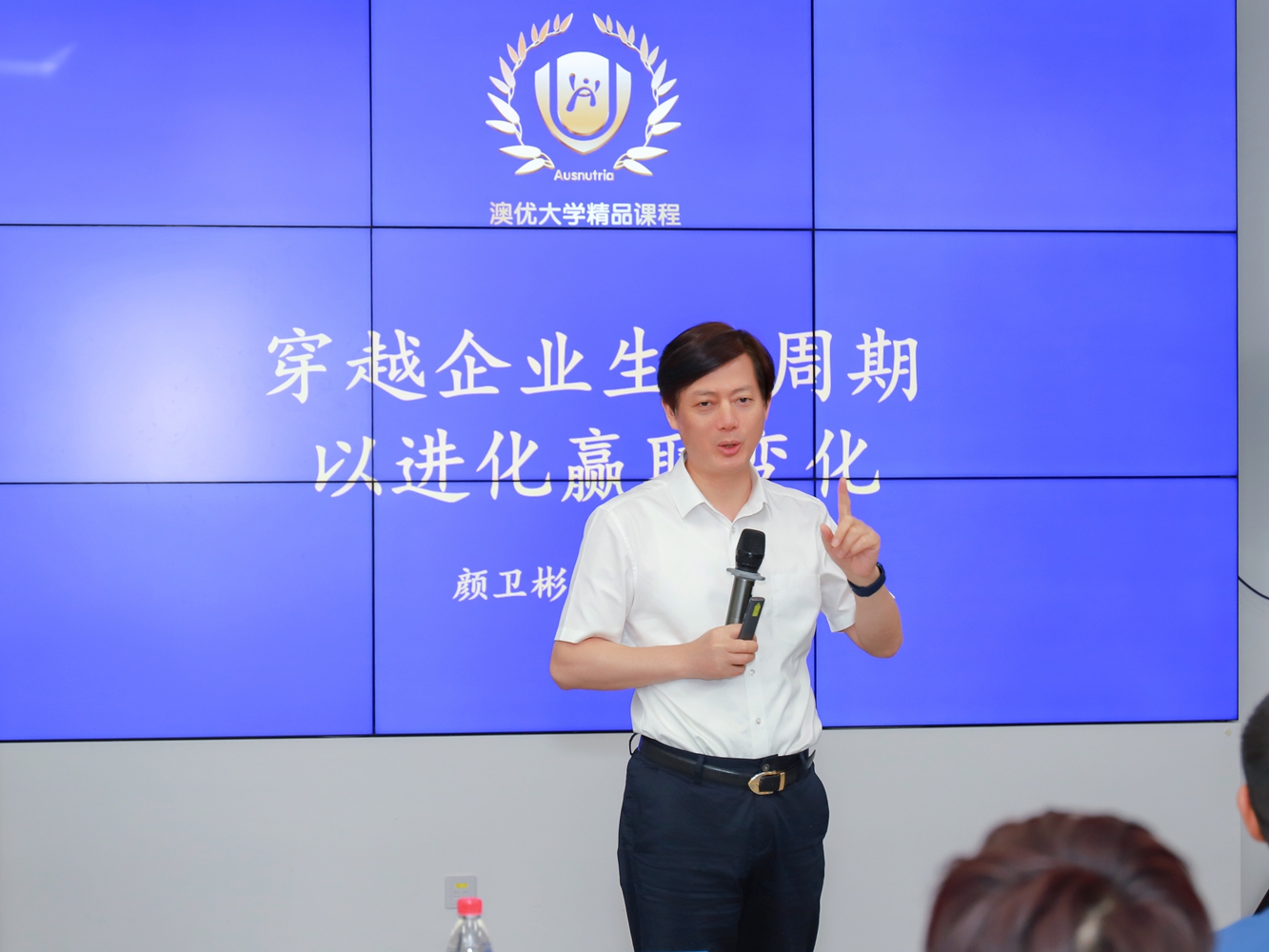 結營典禮開始之前,湖南省工商聯(lián)副主席、湘商公益基金會理事長、澳優(yōu)董事長顏衛(wèi)彬和澳優(yōu)旗下愛益森總經理肖羅為再次到訪澳優(yōu)的學員們進行主題分享。顏衛(wèi)彬作《穿越企業(yè)生命周期,以進化贏取變化》分享,結合澳優(yōu)在企業(yè)不同生命周期的關鍵實務,幫助學員們了解不同階段的企業(yè)發(fā)展策略,積極正向地迎接挑戰(zhàn),維持感恩與謙虛的心,與企業(yè)共同成長、永續(xù)發(fā)展。肖羅作《大道至簡——商業(yè)決策實戰(zhàn)方法論》分享,介紹從0至1組建佳貝艾特新零售團隊,完成新業(yè)務新模式的探索與實踐,實現(xiàn)新業(yè)務3年過億的實戰(zhàn)經驗。