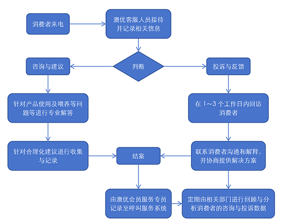 由客服根據喂養、產品使用等不同類型的咨詢問題,向消費者進行專業和耐心解答;如有消費者向公司提出合理化建議時,客服會進行統一收集和記錄。