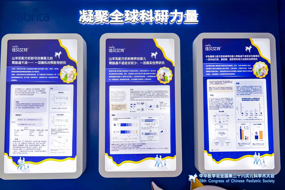 此次參與大會,佳貝艾特緊扣學術交流主旨,向與會專家學者分享了多項山羊乳配方奶粉喂養效果方面的最新科研成果和佳貝艾特全系列羊奶粉產品。其中《山羊乳配方奶粉喂養的嬰兒胃腸道不適癥狀較少:一項真實世界研究》、《羊乳基嬰兒配方奶粉喂養的嬰兒胃腸道不適癥狀改善情況:一項來自巴西、墨西哥、俄羅斯和荷蘭的真實世界研究》以及《山羊奶配方奶粉可改善嬰兒的胃腸道不適——一項隨機對照前導研究》等三項研究,基于中國、巴西、墨西哥、俄羅斯以及荷蘭等多國調查結果,證明了“食用佳貝艾特山羊乳基配方奶粉的嬰兒胃腸道不適癥狀較少”這一結論,并在全球極具國際影響力的嬰幼兒營養學界學術盛會——第55屆歐洲兒科胃腸病學、肝病學和營養學學會(2023 ESPGHAN)年會上發表,吸引了國內外營養學界專業人士的廣泛關注和討論。